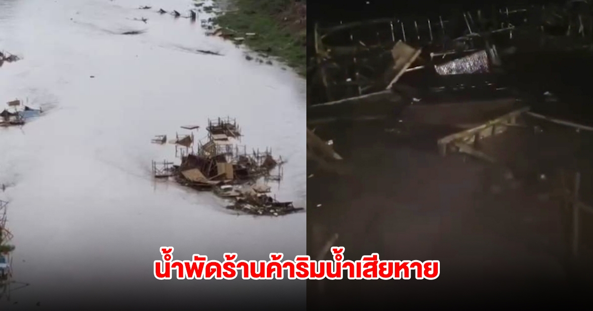 "น้ำป่าหลากพัดร้านค้าริมน้ำเสียหาย โต๊ะเก้าอี้ปลิวระเนระนาดไปกับสายน้ำ"