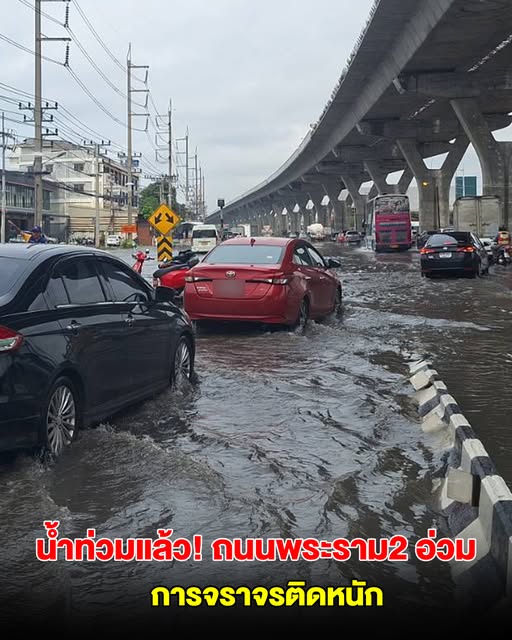 "ฝนตกหนัก น้ำท่วมถนนพระราม2 การจราจรติดหนัก"