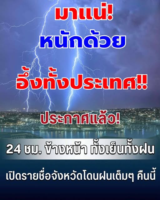 ประกาสด่วน!! เปิดรายชื่อจังหวัด เจอฝนถล่มคืนนี้