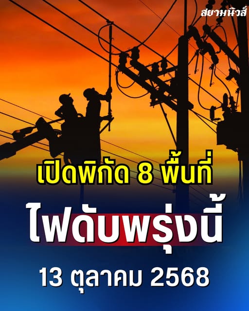 ประกาศแล้ว! เปิดพิกัด 8 พื้นที่ ไฟดับพรุ่งนี้ 13 ตุลาคม 2568